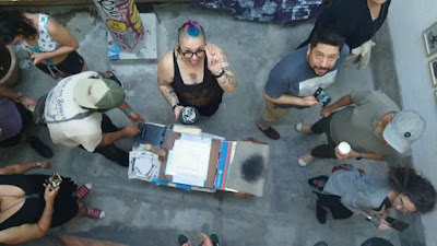 We "borrowed" the idea of doing live printmaking with a Tortilla Press from 3 Gatos Press. They took us to print on the streets of Tlaquepaque in 2019: