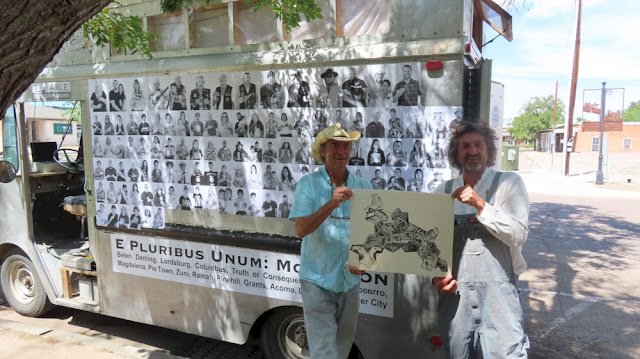We went to Socorro, New Mexico on September 1, 2024, to side-bust on AXLE CONTEMOPORARY -- making a guerilla tessellation print in front of their mobile art van -- while they were taking photos for their E Pluribus Unum: Mogollon project:
