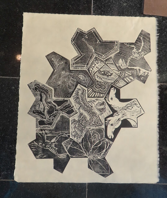 Three prints hand-printed at the SANTA FE COMMUNITY COLLEGE:
